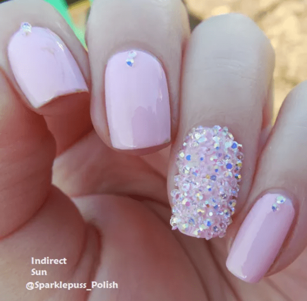 That is such a bling bling mani! I really love the soft pink, its so pretty!