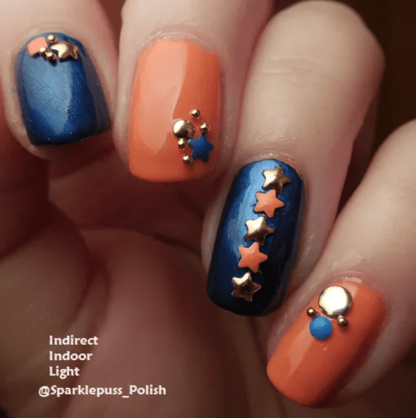 Enough about moi. I have a fun mani I did 2 Superbowls ago in old school Denver Broncos colors.